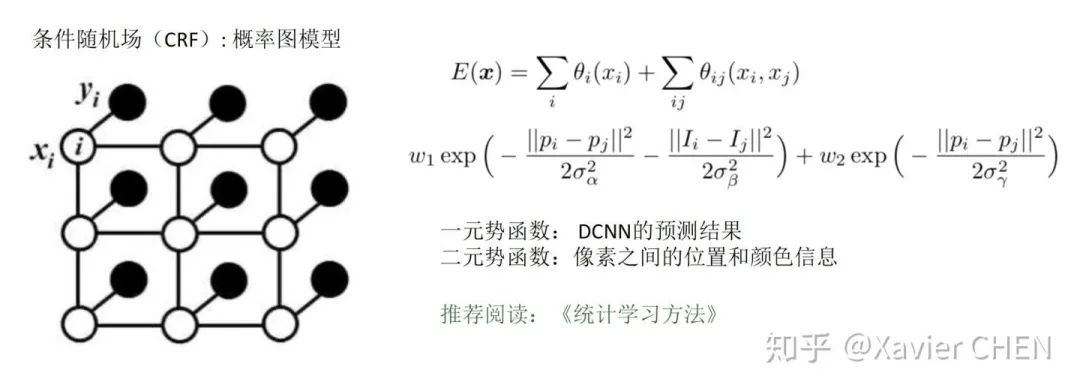 2.加入CRF(条件随机场),利用像素之间的关连信息:相邻的像素,或者颜色相近的像素有更大的可能属于同一个class。