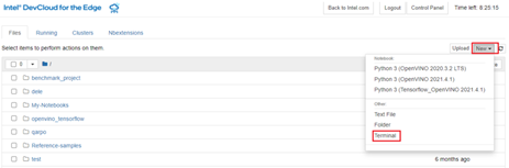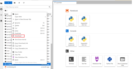 可以通过Jupyter Notebook和Jupyter Lab在Intel® DevCloud 和本地电脑之间传输文件。
