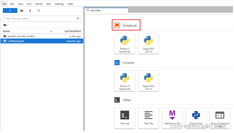 - Jupyter Lab:打开后,选择右侧框中Notebook中一项, 即可新建. ipynb文件,如图2-2。