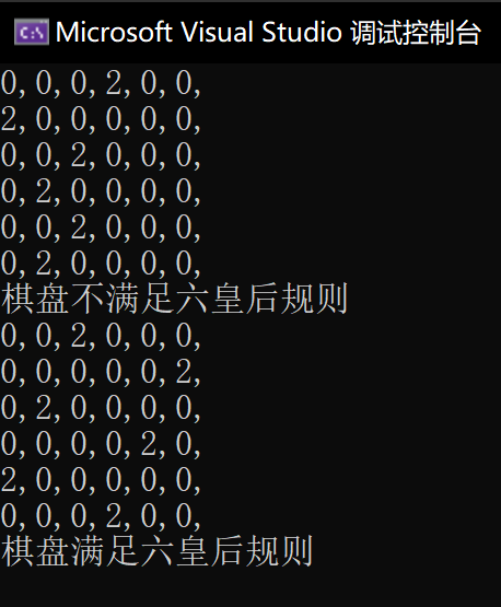 bool isNeed = CheckChessboard(chessboard);//判断是不是满足6皇后