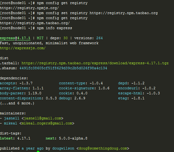 npm info express