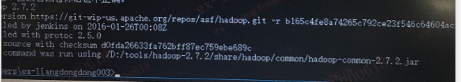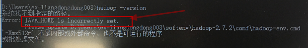 2.第二次重新安装另一个包hadoop-2.7.2.zip并配置环境,发现不再报上面的问题了,但是出现了新的问题,如下面截图: