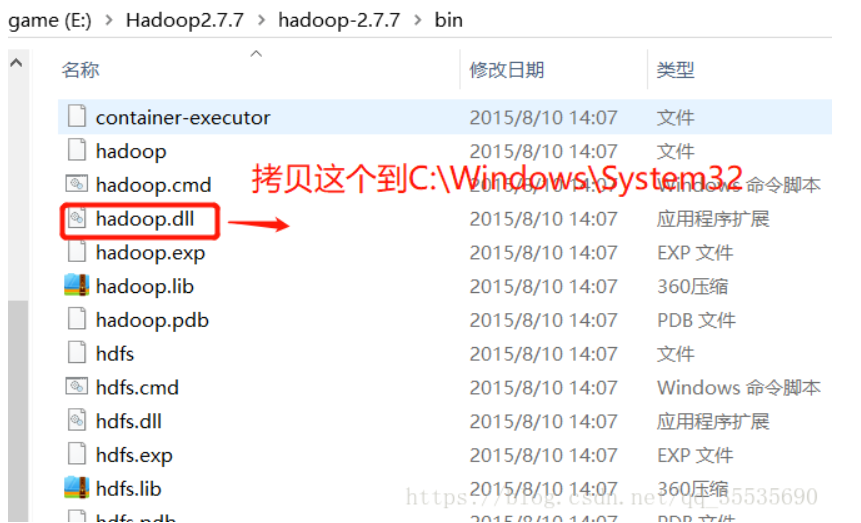 官网下载hadoop-2.7.2,安装时注意,
