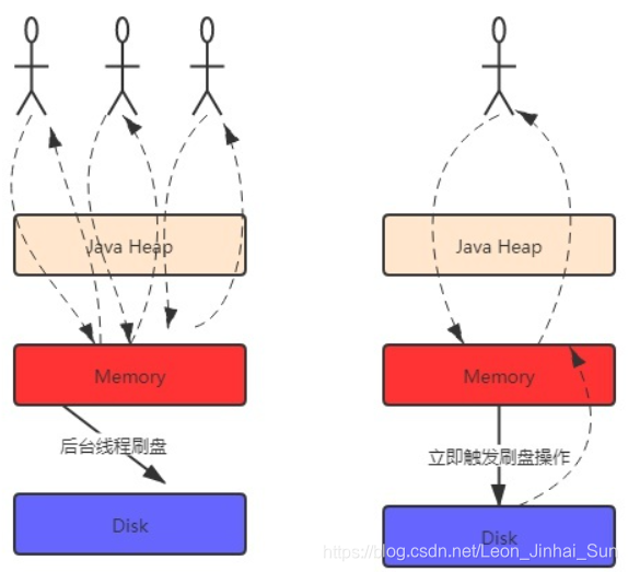 「同步刷盘方式」:消息写入内存的 PAGECACHE 后,立刻通知刷盘线程刷盘,然后等待刷盘完成,刷盘线程执行完成后唤醒等待的线程,返回消息写成功的状态。这种方式「可以保证数据绝对安全,但是吞吐量不大」。