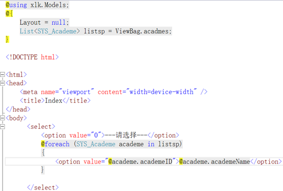 单个MVC下拉框数据的绑定