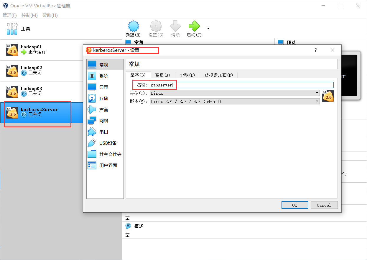 注意:之前我们的kerberosServer地址为192.168.56.240,现在将名字改为ntpserver作为时间服务器。
