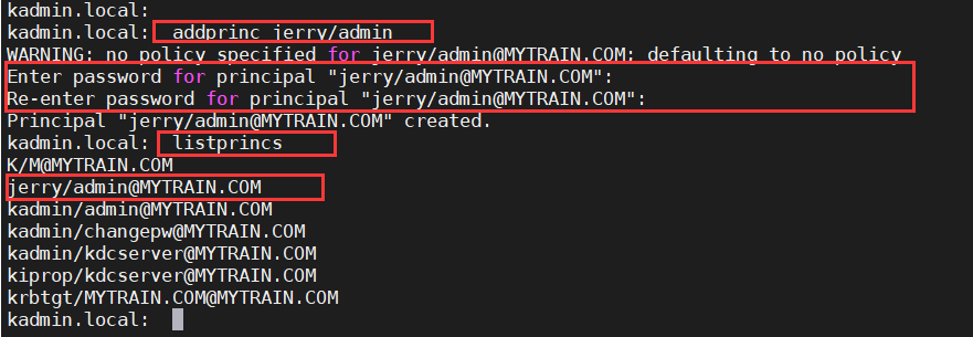 kadmin.local提示符:addprinc jerry/admin