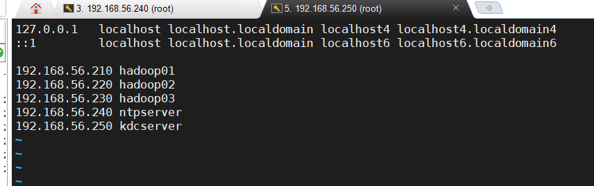 使用vi编辑kdcserver的/etc/hosts文件:
