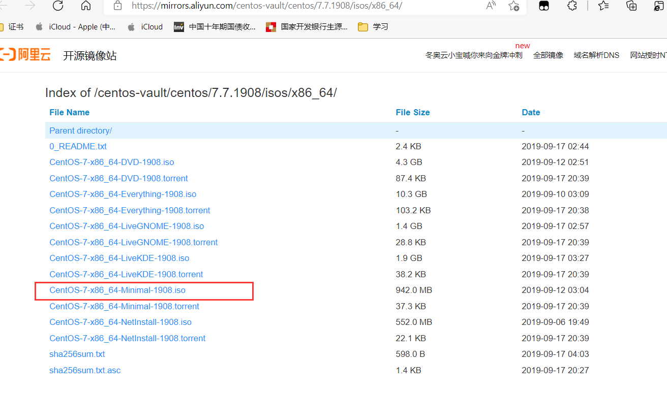 centos镜像下载(镜像下载较快) 阿里云开源镜像站资源目录 (aliyun.com)