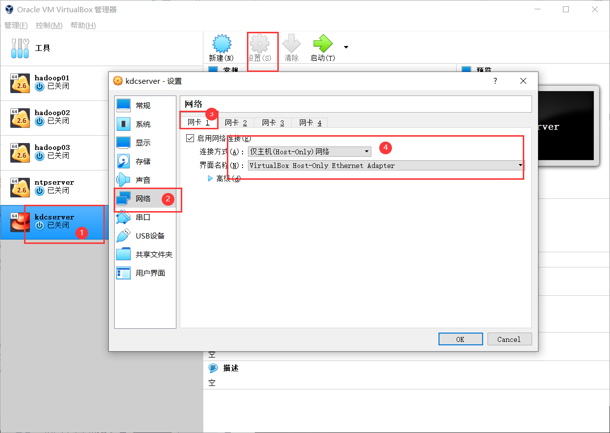 界面名称中的选项对应的是系统中的虚拟网卡,该网卡在安装virtual Box 时会自动创建,该网卡的ip地址也就是虚拟机构成局域网后的网关,你可以在宿主机操作系统的网络配置中找到虚拟网卡。