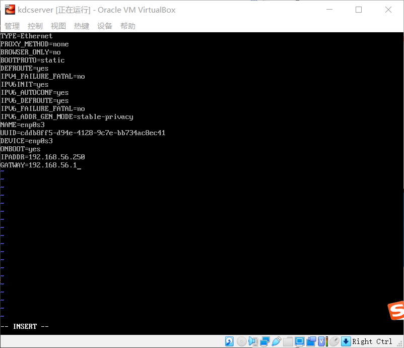 3. 添加一行,设置ip地址:ipaddr=具体ip地址,网关gatway=网段(192.168.56.1)