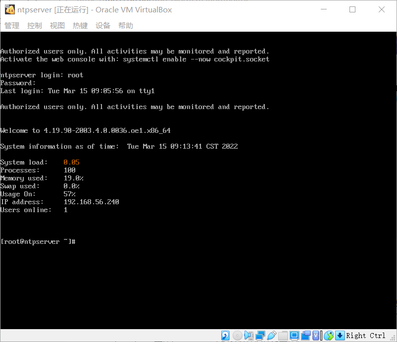 启动192.168.56.240ntpserver服务器,进行修改主机名