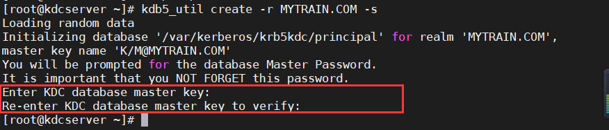 kdb5_util create -r MYTRAIN.COM -s