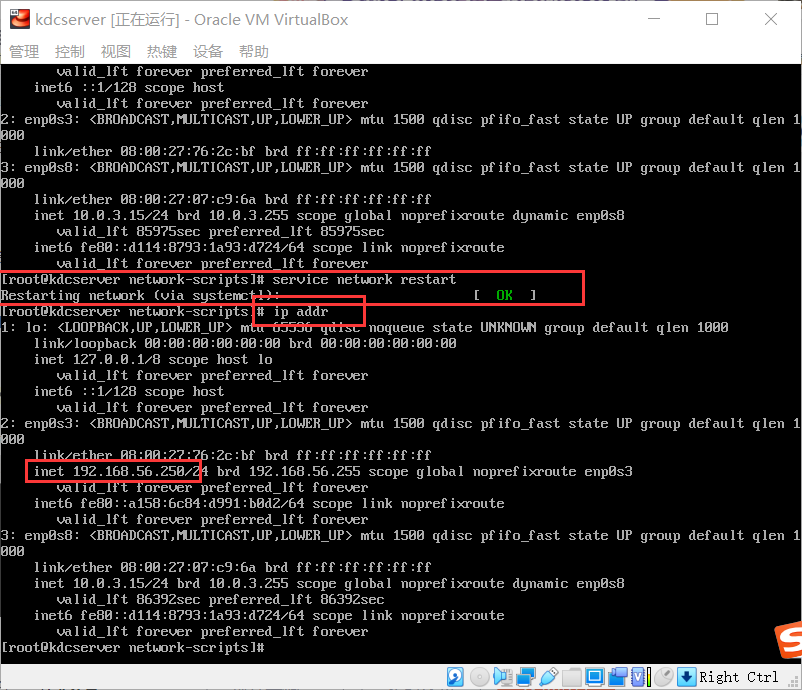 查看虚拟机ip地址: ip addr