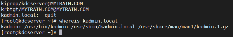 注意:通过yum安装时,kadmin.local命令已经在任何路径下可用,如果向知道kadmin.local的具体位置,可以使用 whereis kadmin.local 查看