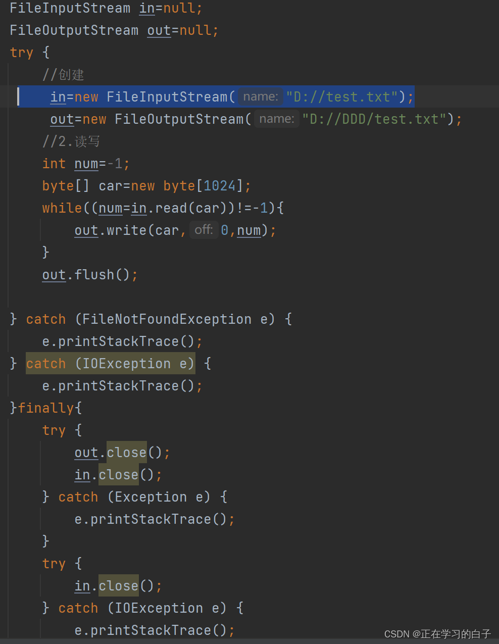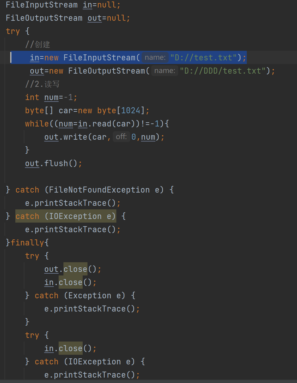 1.创建文件 2.创建输入流 3.读入 4.关闭