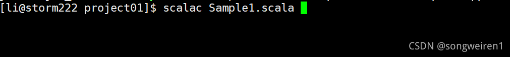这一步骤的意思是:先将 Sample1.scala 程序生成一个 Sample1.class 文件