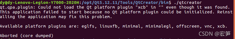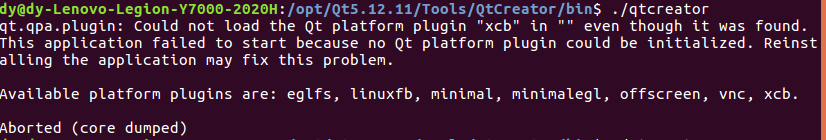 今天在Linux系统卸载了Qt 5.9, 然后安装Qt 5.12, 结果运行qtcreator时,报如下错: