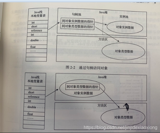 栈中的局部变量表存放了编译期可知的各种java虚拟机基本数据类型(boolean/byte/char/short/int/float/long/double)、对象引用(reference类型,它不是对象本身是指向对象起始地址的引用指针,也可能是指向一个代表对象的句柄或者其他与此对象相关的位置),和returnAddress类型(指向了一条字节码指令的地址)
