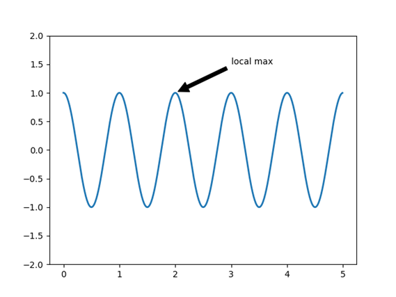 在这个基本示例中,xy (箭头顶端)和xytext位置(文本位置)都在数据坐标中。还有许多其它的坐标系可供选择,详情参见文档和高级注释。更多例子可参见。