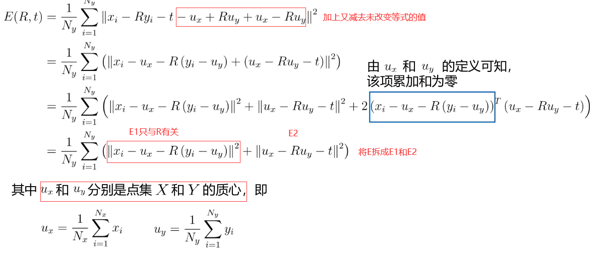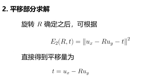 将误差函数拆解成两部分,一部分是只与旋转有关,另一部分与旋转和平移有关,所以可以先求旋转再求平移