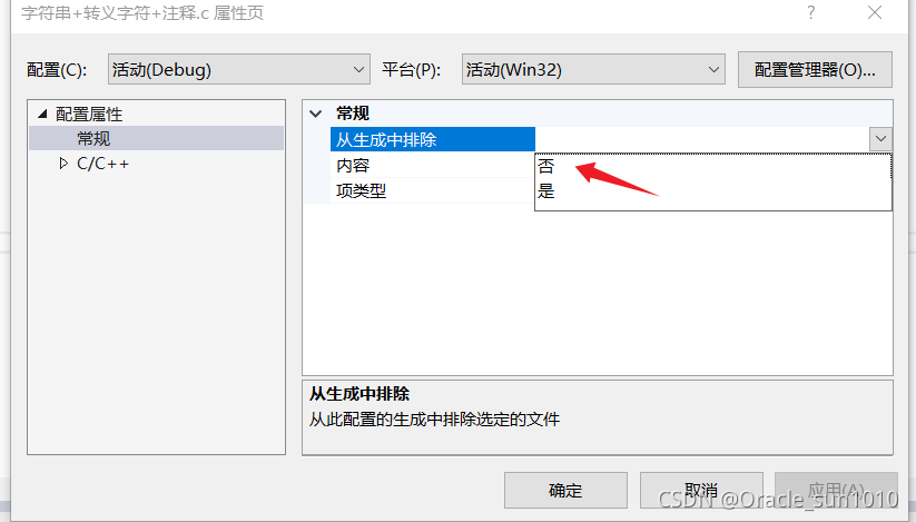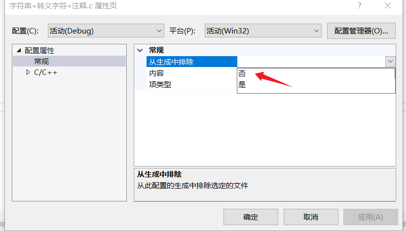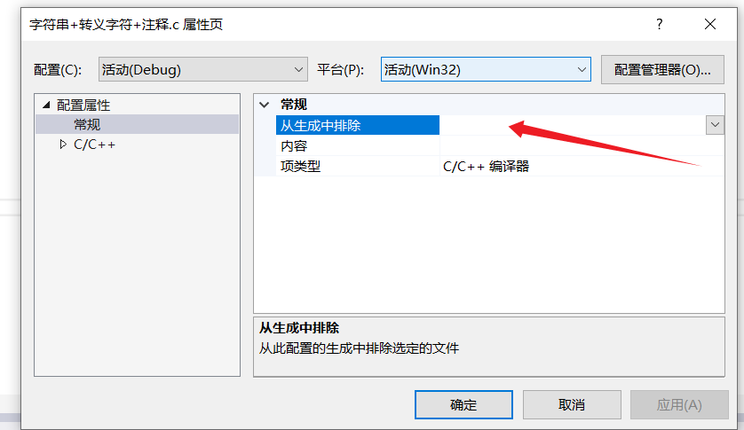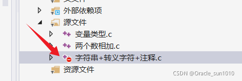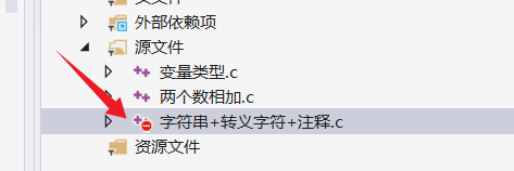 注意,我们需要将其他所有带有main函数的源文件设置成上面这种状态,否则只要存在一个源文件含有main函数,我们就执行不了文件。设置完之后,我们可以看到我们所设置的源文件变成了红色。