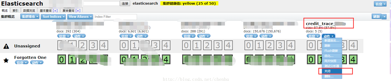 4、最后再去把索引credit_trace 开启,如下图,搜索名字—>动作—>打开。
