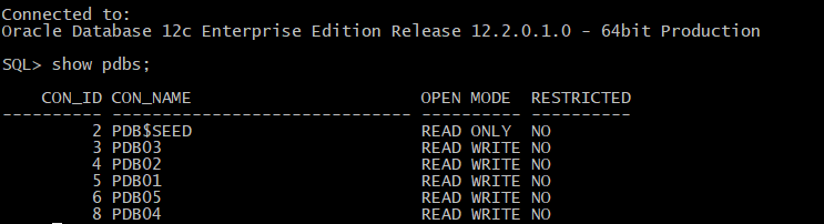 execute immediate 'alter pluggable database pdb01,pdb02,pdb03 open';