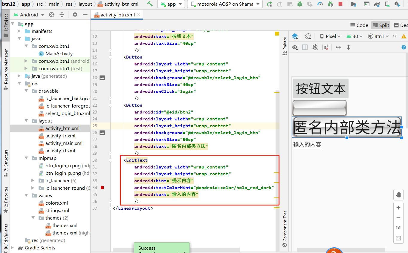 1、提示文本框、输入文本框,在布局xml编写