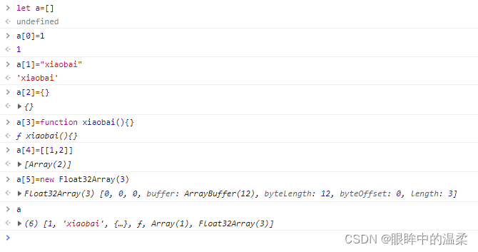 a // [1, 'xiaobai', {…}, ƒ, Array(1), Float32Array(3)]图演示: