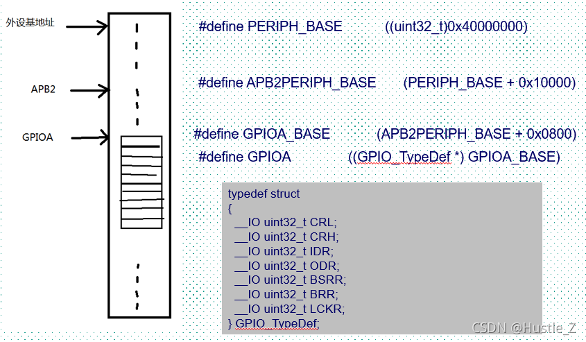 4)GPIO_TypeDef强转,即GPIOA内的寄存器地址