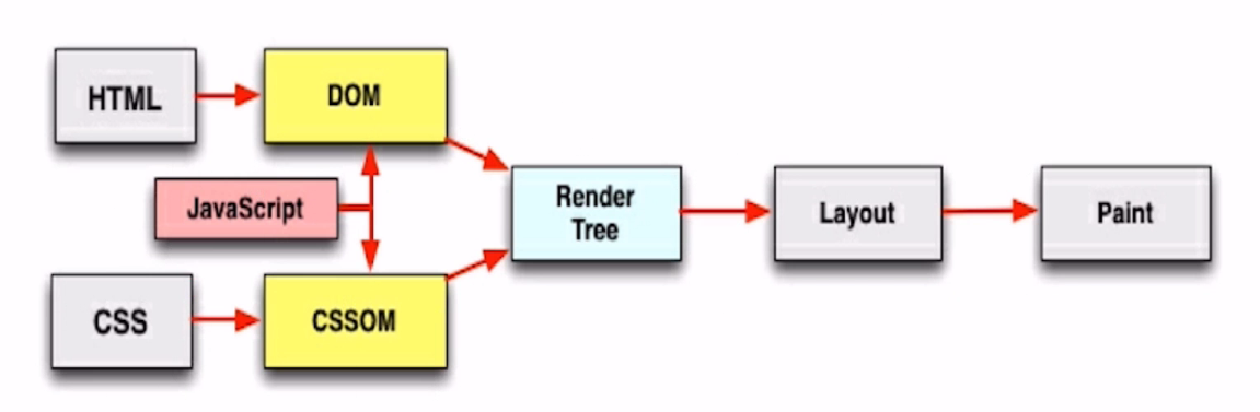 输入浏览器地址,从服务器获取Html、JS、CSS数据,在页面构造中,解析HTML文档,构件DOM树,下载资源,构造CSSOM树,执行js脚本(并行)。解析过程中遇到图片、样式表、js文件,启动下载。