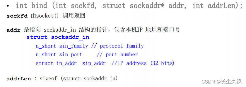 int ret=bind(sockfd,(struct sockaddr *)&saddr,sizeof(struct sockaddr_in));