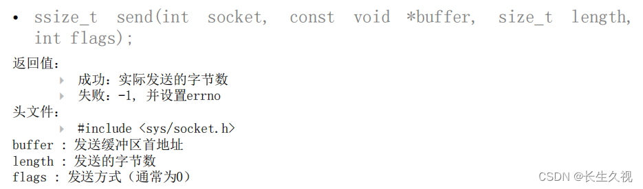 客户端:创建套接字(socket)、发送连接请求(connect\send)、收发数据(read/write)、关闭套接字(close)。