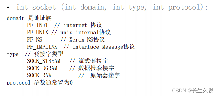 与之前介绍的通信方式不同,套接字主要用于网络通信,也就是不同主机上的进程通信。在OSI七层模型或是当前通用的TCP/IP四层模型中。网络层使用的IP协议通常是建立点对点的连接,即主机和主机之间的连接,在传输层中引入端口号,通过套接字(IP+端口号)实现了端到端的连接,也就是主机进程到主机进程之间的连接。是一个编程接口,是一种特殊的文件描述符,并不仅限于TCP/IP协议。