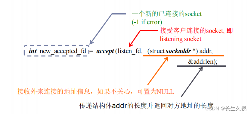 int clientfd=accept(sockfd,(struct sockaddr *)&caddr,(socklen_t*)&socklen);