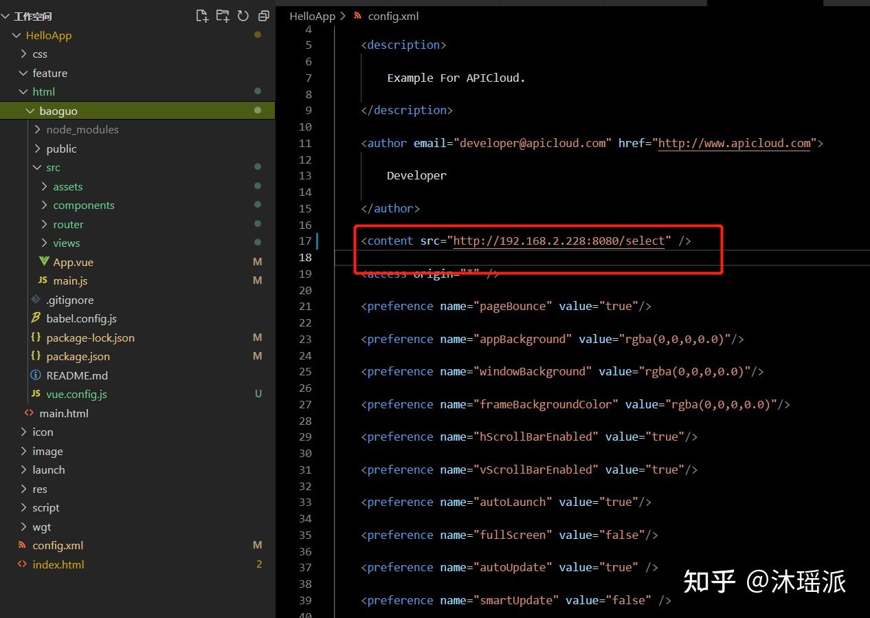 如果上来就是链接npm run serve的页面,可以在配config.xml,如图。ip地址是启动的本机的ip地址,注意手机和电脑在同一个wifi下面。
