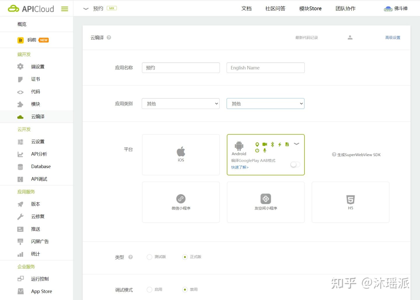编译正式包:点击后台的控制器,点击里面的云编译,选择我们要编译的平台,应用类别,应用名称等,选择打包,然后等待打包完成,这样我们就完成了APICloud的开发。