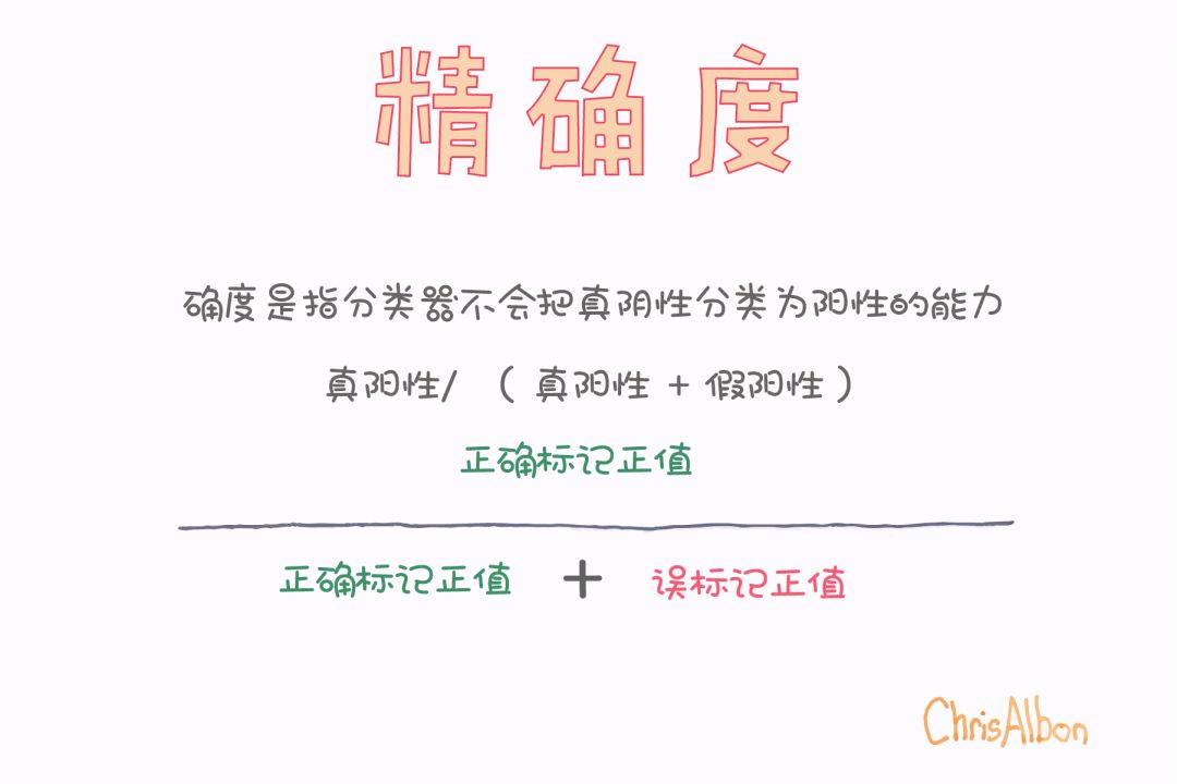 精度是指在所有预测为正例的分类中,预测正确的程度为正例的效果。