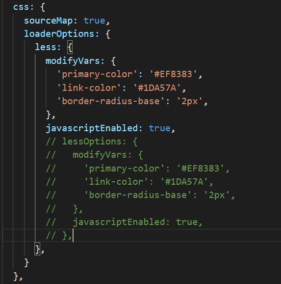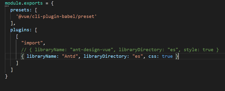 ant design vue(解决less-loader全局引入问题和主题色相关问题) 以上全局引入和修改主题会出现问题(注意引入的样式文件是.css还是.less) 以下方式可以解决babel.config.js vue.config.js 版权声明:本文为lj_qmzhnT_T原创文章,遵循CC 4.0 BY-SA版权协议,转载请附上原文出处链接和本声明。原文链接:https://blog.csdn.net/lj_qmzhnT_T/article/details/107188771