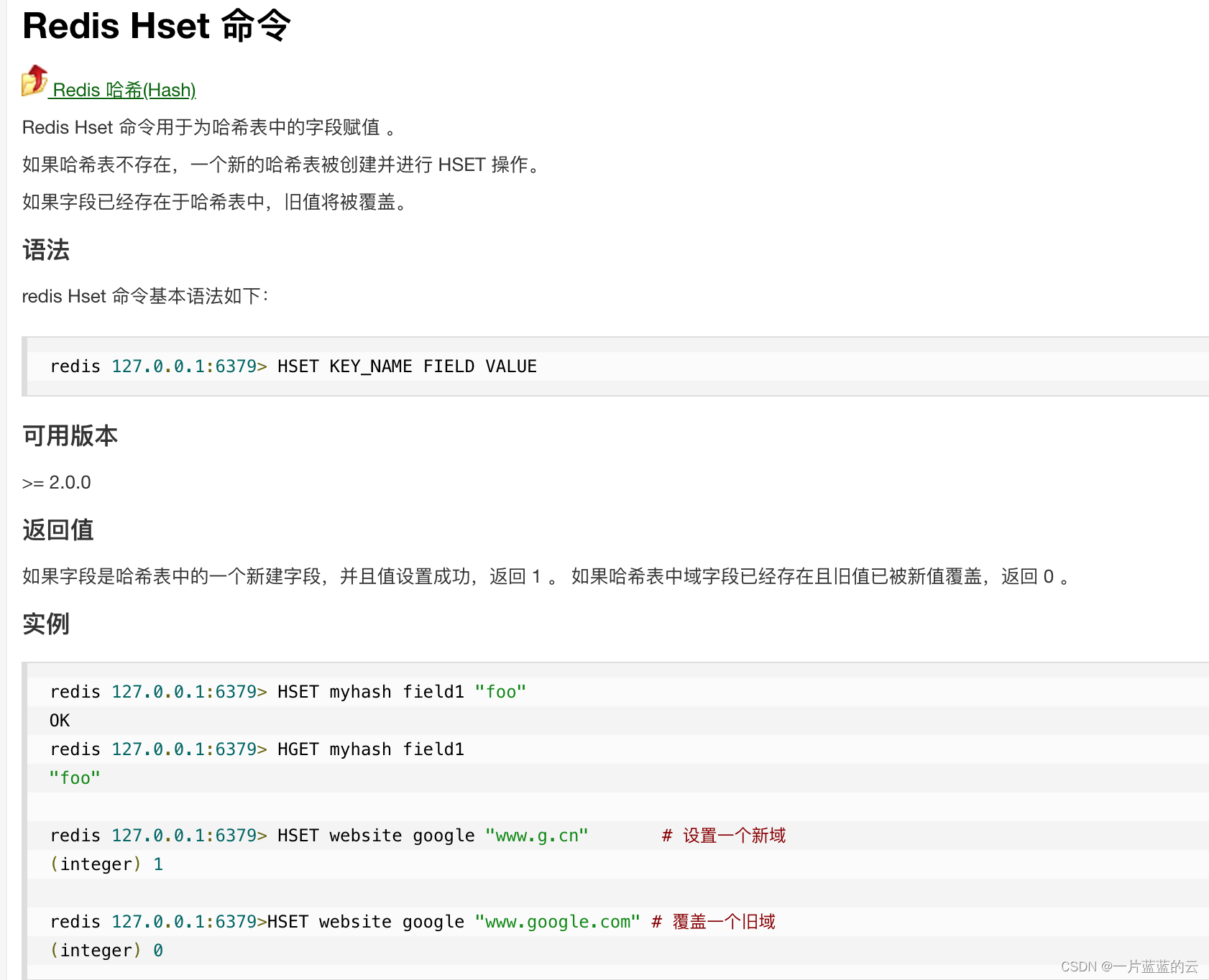 Redis Hget 命令用于返回哈希表中指定字段的值。