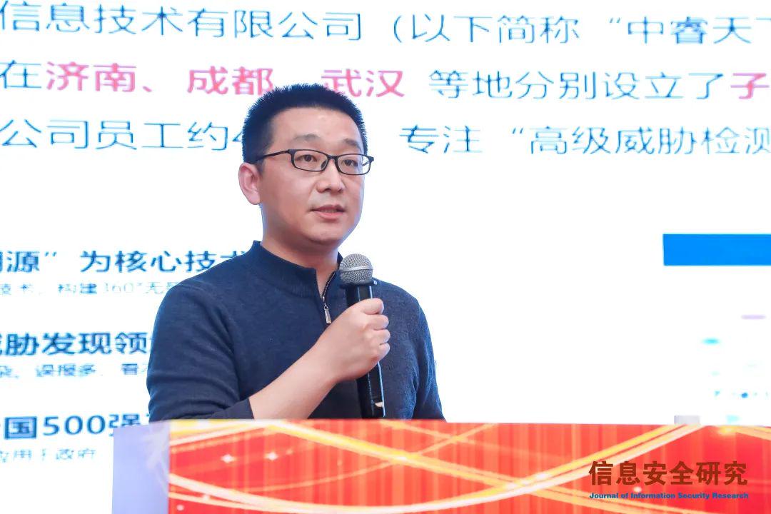 2023年2月23日,由国家信息中心《信息安全研究》杂志社主办的“2022网络安全创新发展高峰论坛”在北京顺利召开,中国科学院院士郑建华、中国科学院院士冯登国、公安部网络安全保卫局处长祝国邦等单位领导专家出席会议。中睿天下受邀参加本届网络安全创新发展高峰论坛,联合创始人魏海宇发表了“基于实战场景的积极防御体系建设思路”主题演讲。