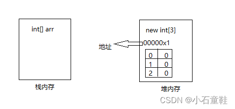 在栈内存中保存的是堆内存空间的访问地址,栈内存会有个地址指向堆内存的地址
