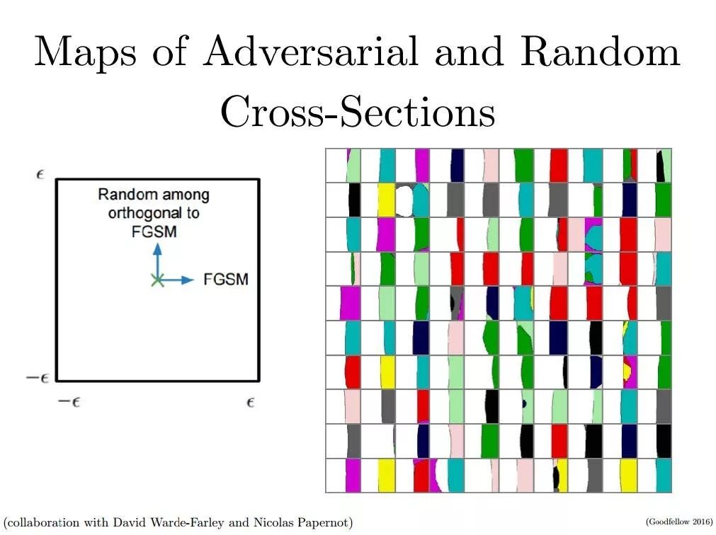 “真”和“假”之间的界限几乎是线性的。我们可以从中得到的第一件很酷的事情是,当你跟随梯度移动的话,一旦你找到了预测的类发生改变的地方,你就可以确认你的攻击是成功的。另一方面,它也在告诉我们一个事实,那就是决策函数的结构要比大多数研究人员所认为的那样远远简单得多。