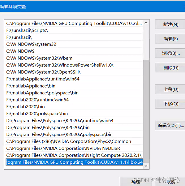 7、添加cuda11.1的lib库环境变量,复制这个路径到环境变量里