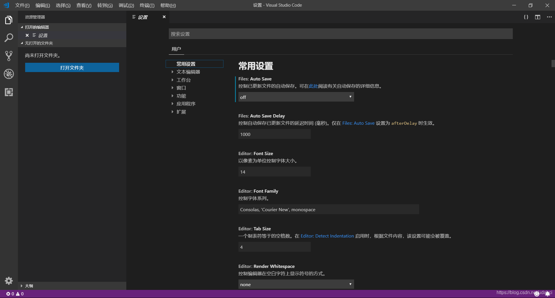 接着在“文件”-“首选项”下可以进行设置例如自动保存,字体大小等