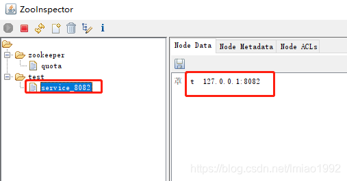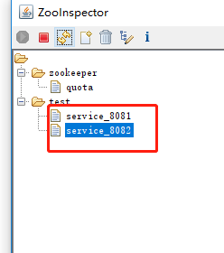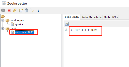 ②启动服务器代码,可以发现创建了一个test的父节点以及service_8082的子节点,其值为127.0.0.1:8082