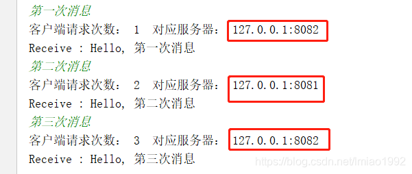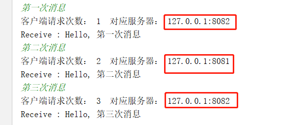 System.out.println("客户端请求次数: " + reqCount + " 对应服务器: " + serverName);