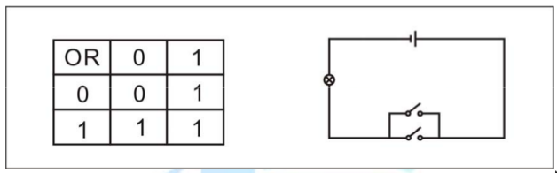 说明:看图 1-4,这是一个并联电路图,任意一个开关按下时,灯泡都会亮。所以说二进制运算是客观存在的,