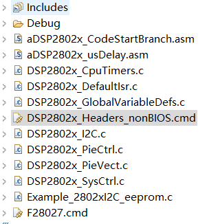 1.在工程项目中添加源文件,重要的是添加DSP2802x_Headers_nonBIOS.cmd和F28027.cmd文件